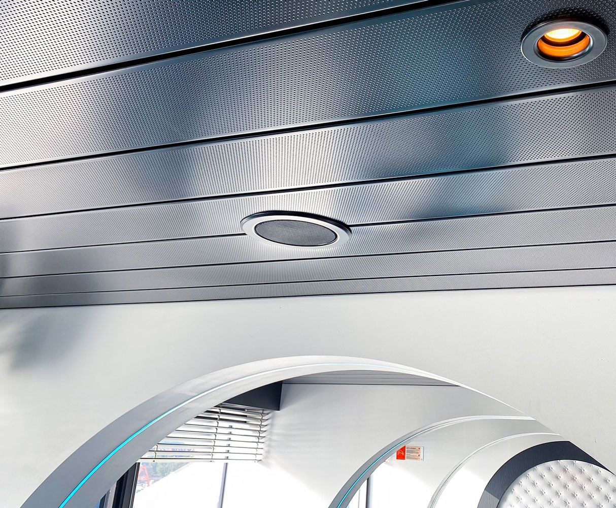 Hochwertige Oberflächen sind gerade im Innenausbau besonders wichtig! Das wissen wir aus unserer langjährigen Erfahrung im Innenausbau auf Kreuzfahrtschiffen. Dort und für die dort zuständigen Innenausbauer lackieren wir bereits seit 1997 Einbaulautsprecher dekorativ in vielen Farben. Aber auch für Konzertsäle, Konferenzzentren oder Hotels lackieren wir Ihre Deckenlautsprecher gerne vor Einbau, damit der wichtigste Teil Ihres Soundsystems so gut aussieht, wie er klingt.